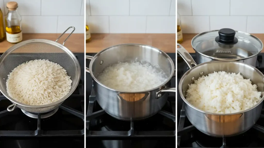 - Use the correct water ratio (usually 1:2 for white rice, 1:2.5 for brown rice)